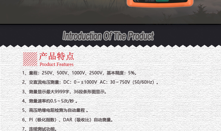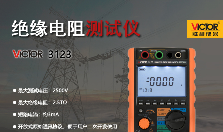 VICTOR 3123高壓絕緣電阻測試儀適用于現(xiàn)場電力設備以及供電線路的測量和檢修。