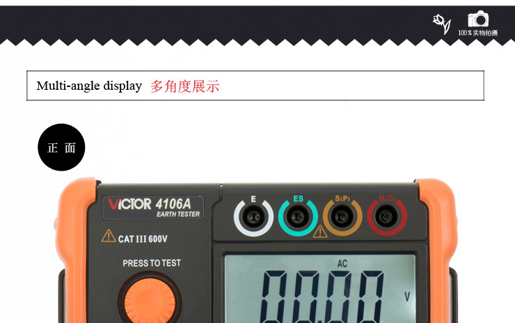 VICTOR 4106A 接地電阻測試儀 產品特點: 1、地電壓測量、3極/4極法接地電阻測量、土壤電阻率(ρ)測量