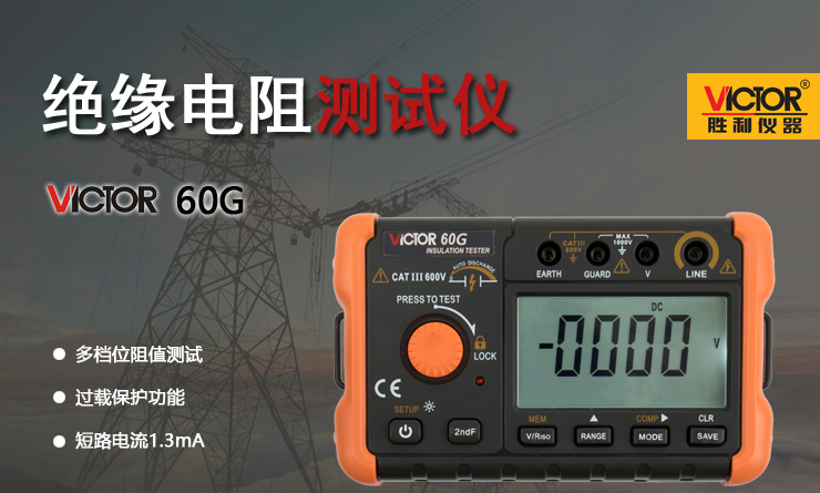 VICTOR 60G 絕緣電阻測(cè)試儀是一臺(tái)智能微型絕緣測(cè)試儀器,整機(jī)電路設(shè)計(jì)采用微機(jī)技術(shù)設(shè)計(jì)為核心,以大規(guī)模集成電路和數(shù)字電路相組合,配有強(qiáng)大的測(cè)量和數(shù)據(jù)處理軟件,完成絕緣電阻、電壓等參數(shù)測(cè)量,性能穩(wěn)定,操作簡(jiǎn)便。對(duì)于適用于現(xiàn)場(chǎng)電力設(shè)備以及供電線路的測(cè)量和檢修的用戶,本儀器是您的理想的選擇。