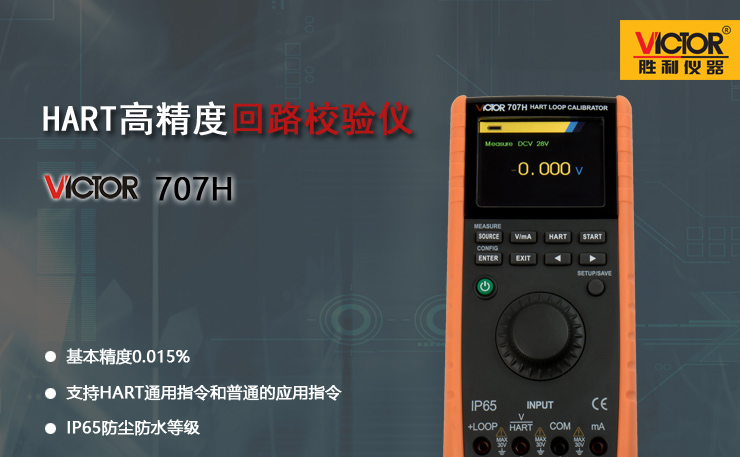 VICTOR 707H HART高精度回路校驗儀是一款高精度回路校驗儀,本儀表內(nèi)置有HART調(diào)制解調(diào)器,可實現(xiàn)HART基礎指令。