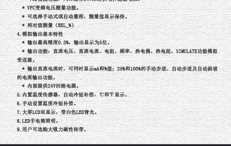 * 輸出功能:直流電壓、直流電流、電阻、頻率、熱電偶、熱電阻、SIMULATE功能模擬變送器。