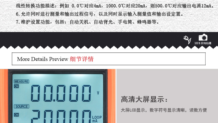 * 輸出最高精度0.05%,輸出顯示為5位。
