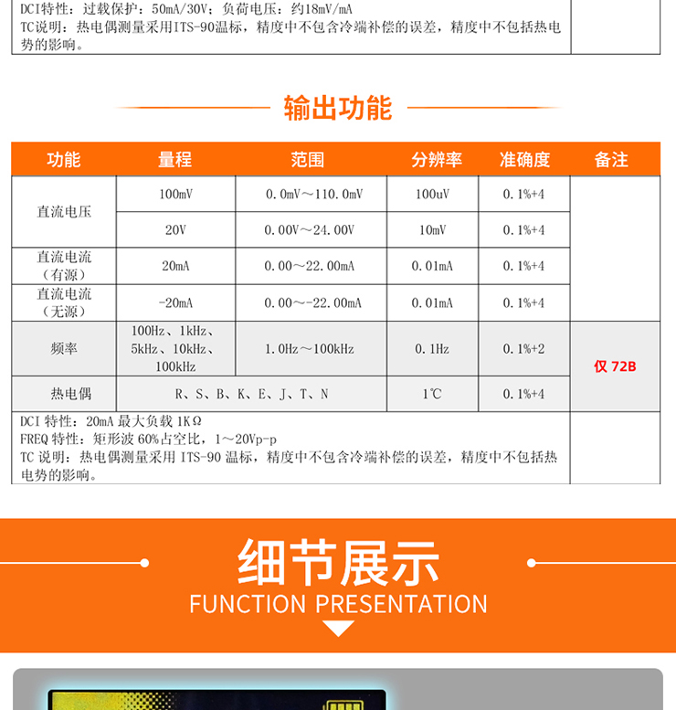 模擬輸出功能 [適用于校準(zhǔn)后一年內(nèi)、23℃±5℃、20~70%RH、精度=±(%設(shè)定值+字)]