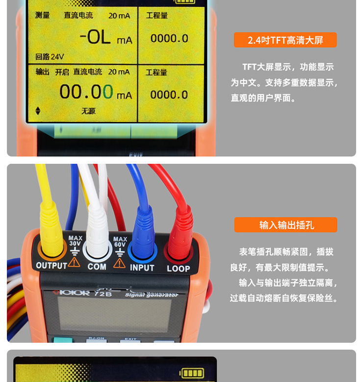 4. 提供24V回路供電,無需外接24V,就能對(duì)現(xiàn)場(chǎng)變送器進(jìn)行調(diào)試。