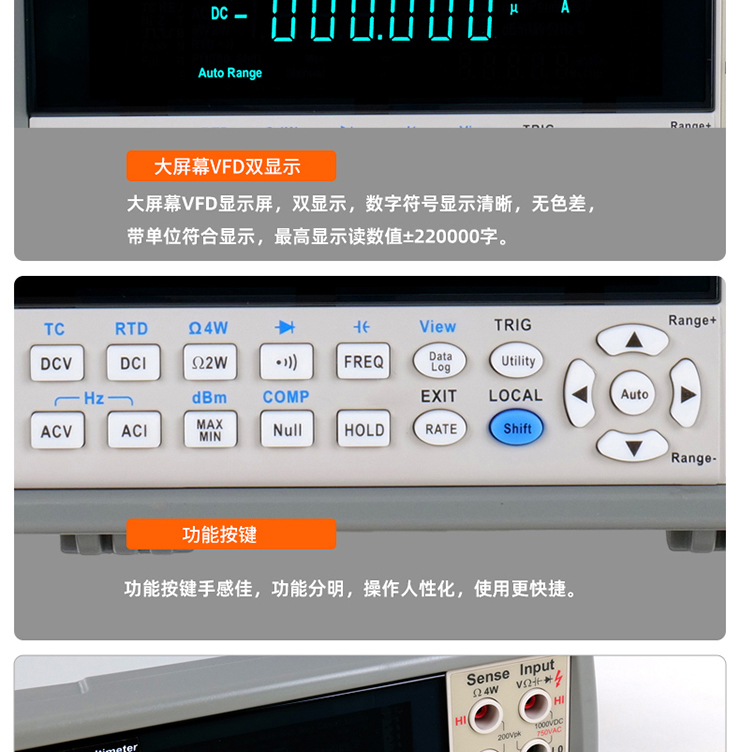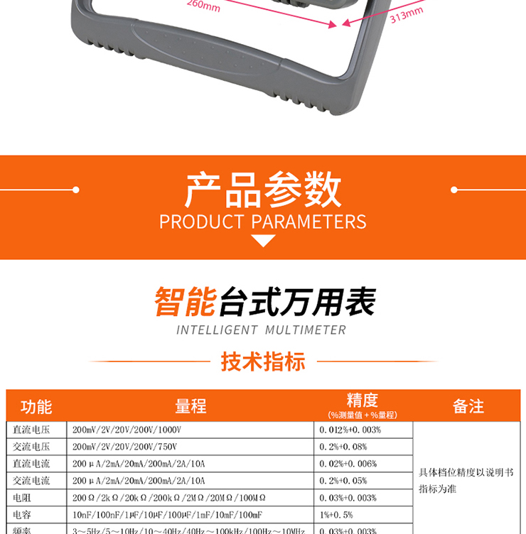 6. 交流測(cè)量為真有效值測(cè)量(RMS),交流帶寬可達(dá)100kHz。