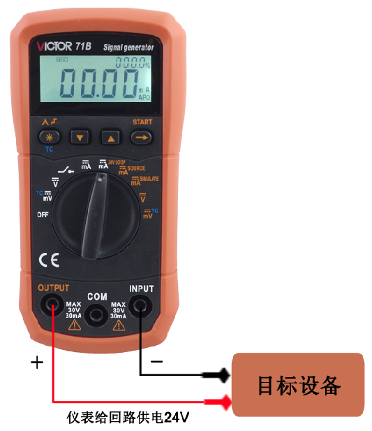 ,OUTPUT引出紅線,INPUT引出黑線,供24V電源測回路電流。